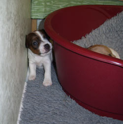 Den här veckan har valparna fått komma ner till köket och