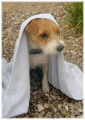 Raros Miss Vanessa of Angel "Molly" på "korvjakt" och efter badet