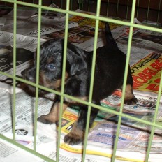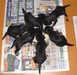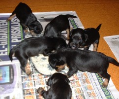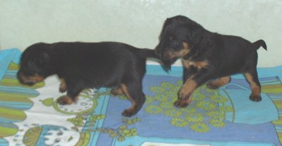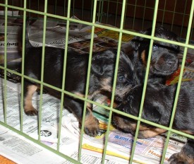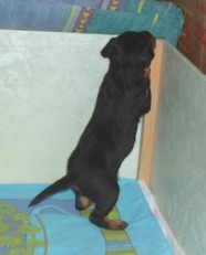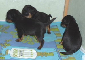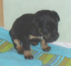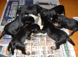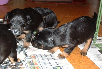 Vi har fått gröt, det är inte bara gott utan också väldigt skoj... nej, matte har inte fotograferat oss när vi äter gröt, hon har fullt sjå med att se till så vi inte slirar alltför mycket i matskålen, ja för man måste ju stå mitt i för att vara säker på att få så mycket som möjligt i oss... Sen tvättar mamma Elsa oss, hon tycker inte om när vi sölar ner oss så...Vi har fått en liten hage utanför valplådan nu så vi kan gå dit och kissa, det är vi duktiga på.