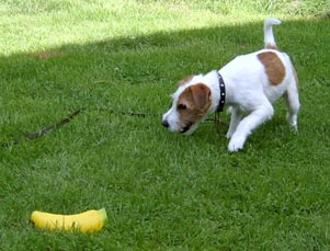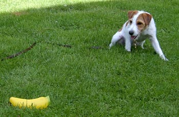 Här har Vicki fått tag i bananen, och tyckte absolut att den var hennes...